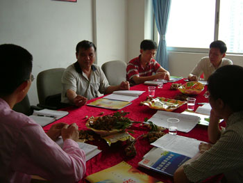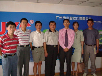 廣州市海珠區經濟發展局黃成柱局長一行5人于2003年8月21日前來指導和檢查安全生產工作 從右起第4位市黃成柱局長,第3位是廣州市小聰軟件公司周小聰總經理 從左起第2位是黃成柱局長作重要講話 從左起第2位是黃成柱局長 從右起第2位是黃成柱局長