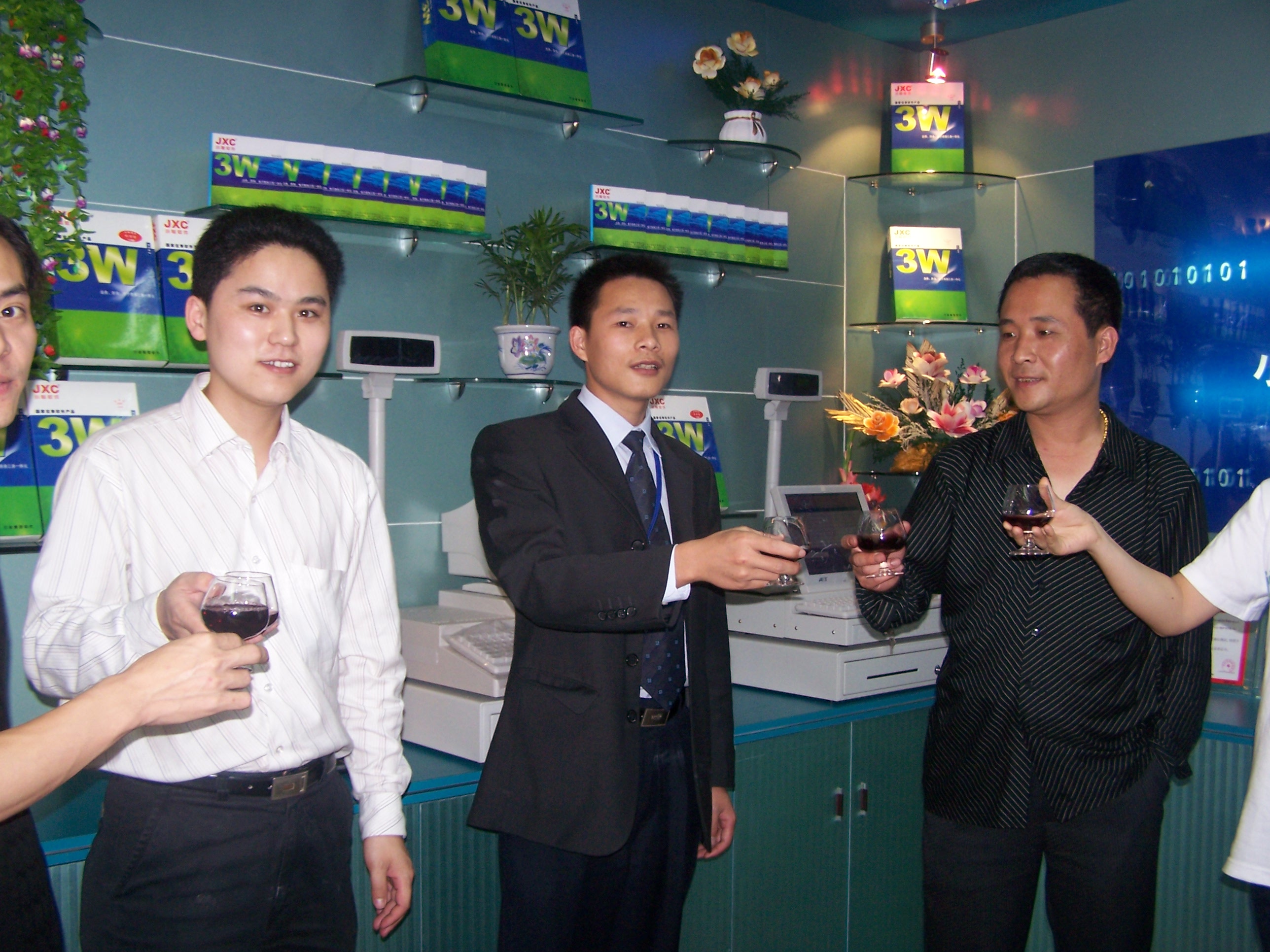 開香檳慶祝、小聰軟件總公司代表祝賀汕尾專賣店開業成功、生意興隆