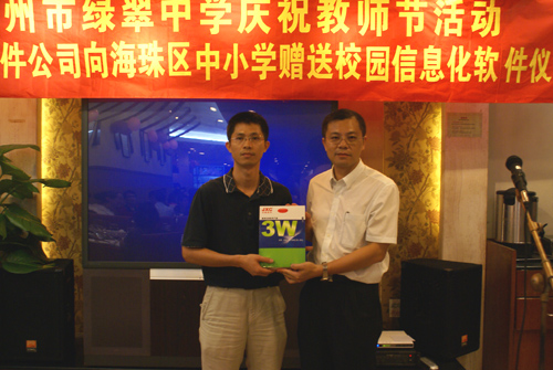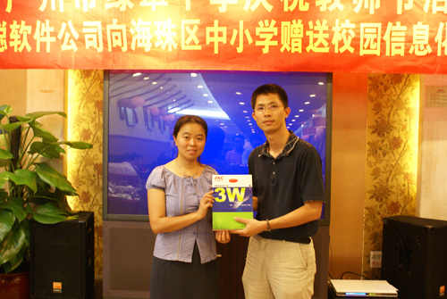 為了促進廣東省中小學的校園信息化平臺建設,廣州市小聰軟件于本月12日在廣州海珠區成功舉辦了“百萬軟件大贈送” 活動,省市有關部門領導出席了該活動,其中省一級廣州市綠翠中學、海珠區實驗小學等多家學校接受了贈送。