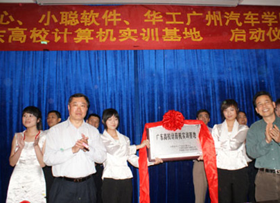 4月20日,廣州市小聰軟件有限公司攜手廣東省計算中心和華南理工大學廣州汽車學院聯合共建“廣東高校計算機實訓基地”啟動儀式在華南工大學廣州汽車學院隆重舉行,廣東省科技廳副巡視員廖兆龍、海珠區、花都區黨政領導、實訓基地合作三 方領導和廣東十多所高校代表等約400人參加了啟動儀式。
