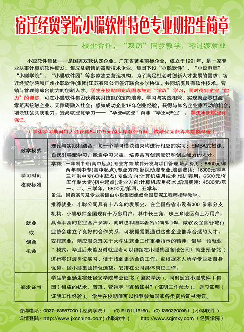 2009宿遷經貿學院小聰軟件特色專業班招生簡章(國家大中專學歷)