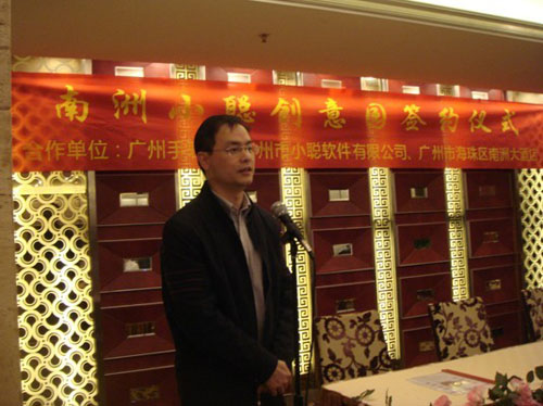 此次簽約儀式由小聰軟件集團(tuán)董事長周小聰主持,董延軍副書記在會上發(fā)表重要講話指出:近幾年來海珠區(qū)的創(chuàng)意產(chǎn)業(yè)蓬勃發(fā)展,比較突出的有海珠區(qū)TIT服裝設(shè)計(jì)創(chuàng)意園、珠影文化創(chuàng)意園,還有小聰科技創(chuàng)意園等多種創(chuàng)意經(jīng)濟(jì),并表示海珠區(qū)將把軟件、科技、創(chuàng)意產(chǎn)業(yè)作為大力發(fā)展的新興產(chǎn)業(yè)予以扶持。