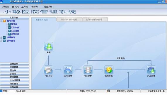 上圖為一個完整的局域網絡系統的基本架構。當然單機上也可以完成要做的所有事情,不過只能在一臺機上使用而已。另外,我們的系統還可以方便地實現遠程的互連,實現遠程的多個部門的協同工作,以及老板的遠程管理。 功能模塊介紹 ·門診收費管理 門診掛號:建立患者資料,允許不掛號直接收費,支持刷卡掛號 門診收費:根據處方收費,支持不劃價直接收費,發票打印自定義 門診退費:經藥房退藥后,進行門診退費 門診日結:支持多日一結或一日多結功能,報表反映的是至上次日結之后的所有收費情況,可以在每天下班或其它固定時間日結、上交財務部門! ·患者資料管理: 患者詳細檔案管理 ·系統設置:用戶信息、醫生信息、科室資料、病區資料等 ·藥房管理:中藥房、西藥房、中成藥等門診藥房和住院藥房的調拔、發藥、退藥、科室領用、報損出庫等 ·藥庫管理:支持中藥庫、西藥庫等多藥庫管理 ·院長財務查詢:提供各類經營決策匯總和明細的日報表、月報表、年報表 在小聰醫院管理系統普及版的基礎上增加的功能模塊 ·住院管理(入院管理、住院收費、押金管理、病區日結、出院管理) ·入院管理:入院病人詳細信息登記、床位分配、收取押金 ·住院收費:按醫囑收費或直接收費,自動扣除押金 ·押金管理:補交押金、退押金處理 ·病區日結:住院日結支持多日一結或一日多結功能,報表反映的是收費至上次日結之后的所有收費情況,可以在每天下班或其它固定時間結掉上交財務 ·出院管理:出院結帳、發票打印